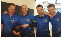 Už předcházející kola naznačovala, které čtyři týmy si zahrají O titul a předpoklady se naplnily. Jsou to BT Notaxo (98 b), BT Notaxo B (96,5 b), Rigor mortis (88 b) a SKB Praha (66 b). SKB se sice dnes vůbec nedařilo, získali jen 7,5 bodu, ale 13,5 bodový náskok z minulého kola se jim sakramentsky hodil. O udržení v 1. lize budou v nadstavbové části hrát Handball team (55,5 b), Řevnická sportovní (55 b), Bowling plus (52 b) a Karel (49 b). Nejlepším hráčem 4. kola byl Aleš Drábek (BT Notaxo) s průměrem 209,43 bodů a hráčkou Věra Váchová (Řevnická sportovní) s průměrem 189,86 bodů. Aleš byl také se šesti vyhranými zápasy nejproduktivnějším hráčem. Nejvyšší nához jednotlivce 254 bodů má na kontě Ondra Mlynář z Rigor mortis a týmový BT Notaxo (622 b).